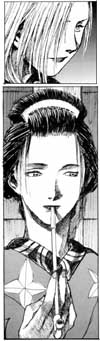 Manji's sister. When she learned of her husband's death she couldn't handle it and just lost her mind. She was groped and killed by thugs. Manji then slew them but was too late, his sister is dead. |