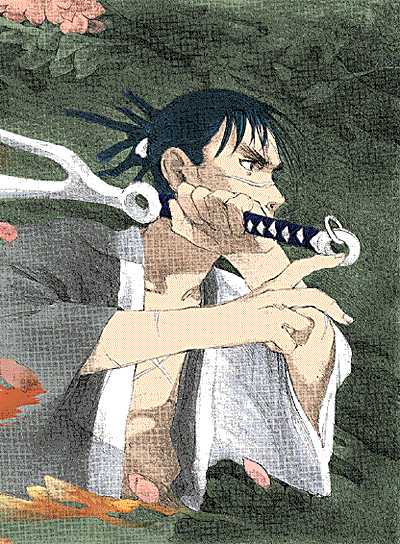 Yaobikuni, an 800 year old woman, was the cause of Manji's immortality. While Manji was not aware, Yaobikuni secretly slipped some kessen-chu into Manji's tea. Now Manji must slay 1000 bad guys before he can die. |